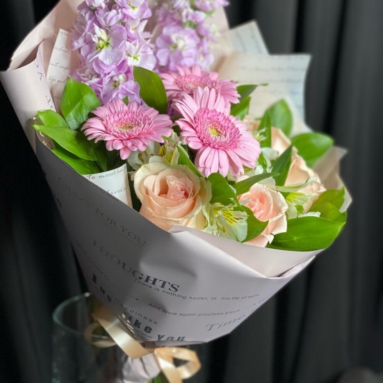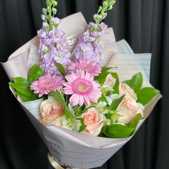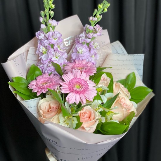 Я люблю именно такие букеты, где есть цветы и сладости))) Ни одна девушка не устоит перед таким) Макарон здесь очень вкусные, цветы свежие!