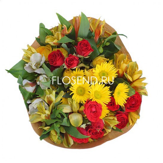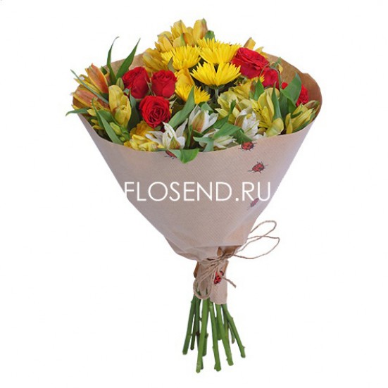 Букет из хризантем и кустовой розы и альстромерий в Ставрополе